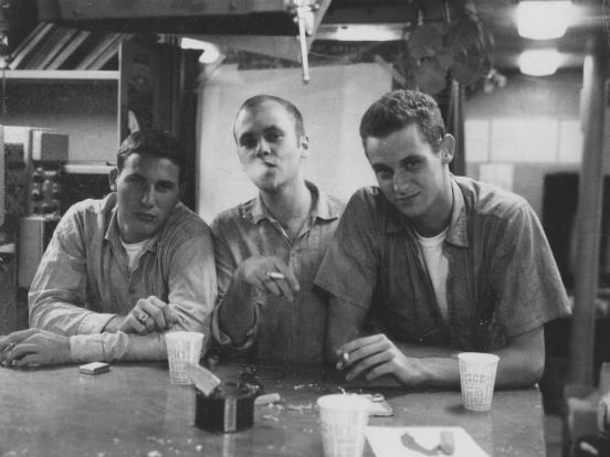 Rod Keith (far left) and two unidentified sailors.