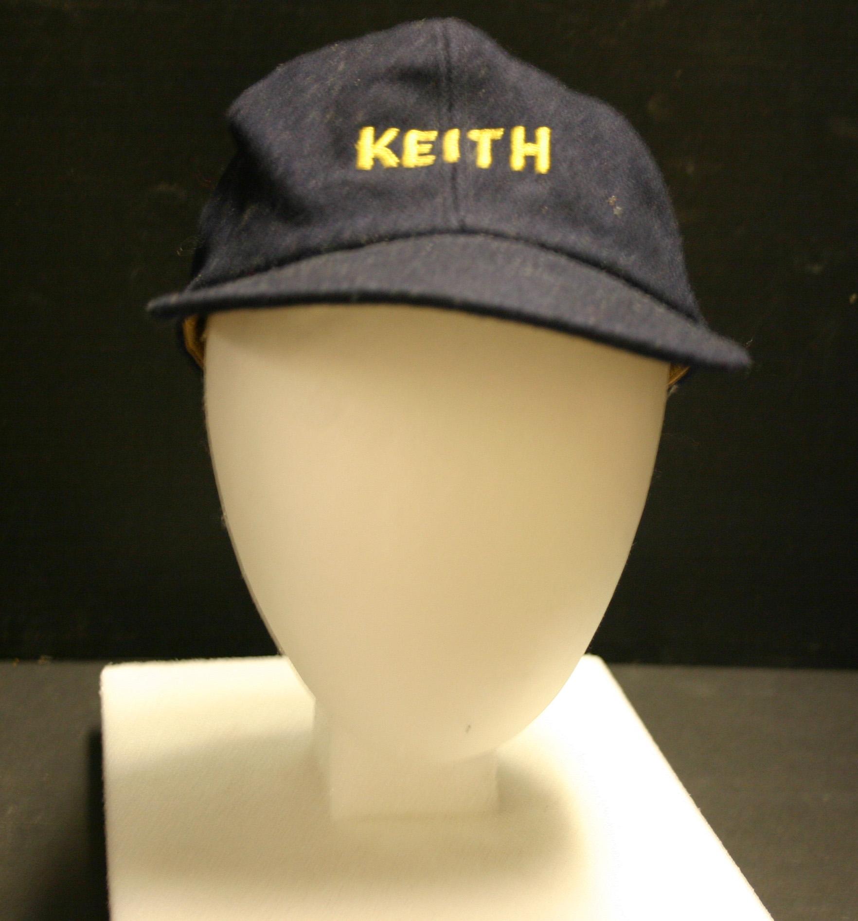 Dark blue wool baseball cap with 'KEITH' embroidered on the front and 'TEXAS' embroidered on the back.