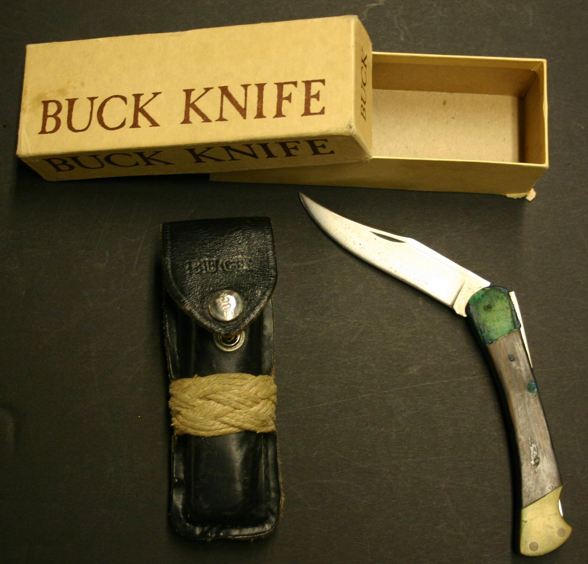 Buck knife with leather case and box