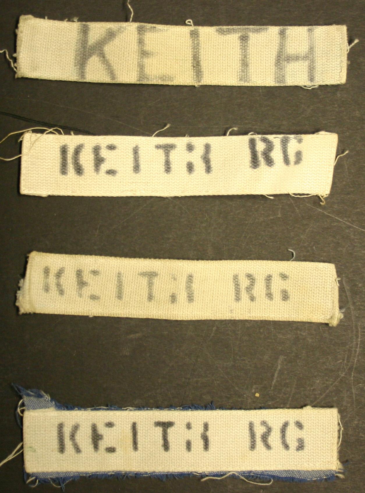 4 United States Navy nametapes with 'Keith RG' stenciled in black.