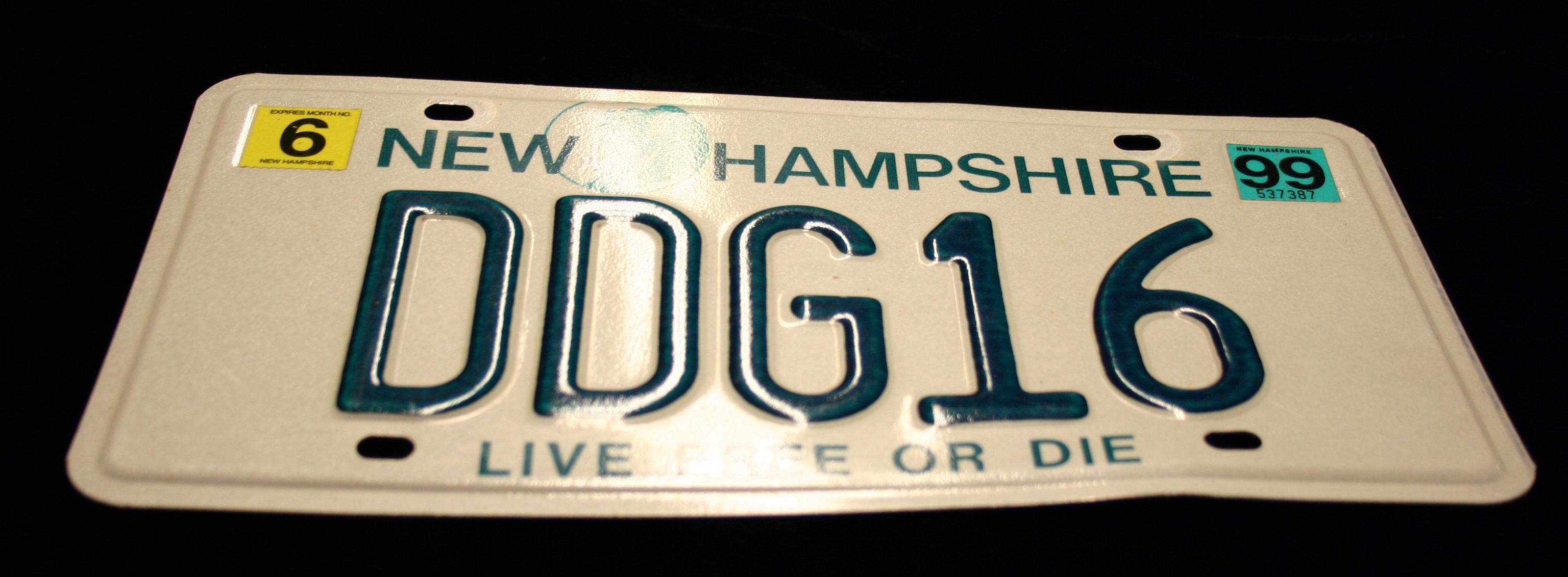 New Hampshire license plate with USS Joseph Strauss call number DDG 16