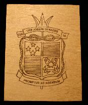 Carving of USS Joseph Strauss crest