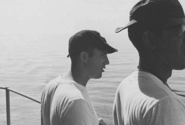 Rod Keith (second from left) and unidentified sailors taking a break inbetween missions.
