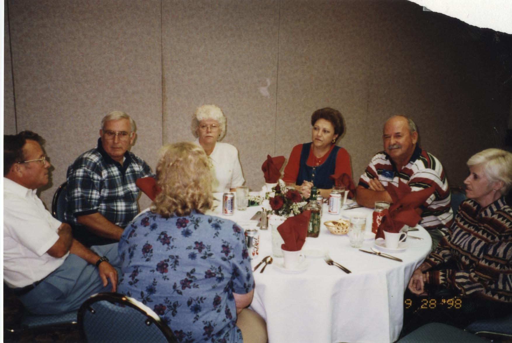 DDG-16 - Sunday Banquet; Left to right - Back to us - unknown, John Spice, Bo Lee, Mary Lee, Jan Waldrop, Ralph Waldrop, Pat Tufanisco