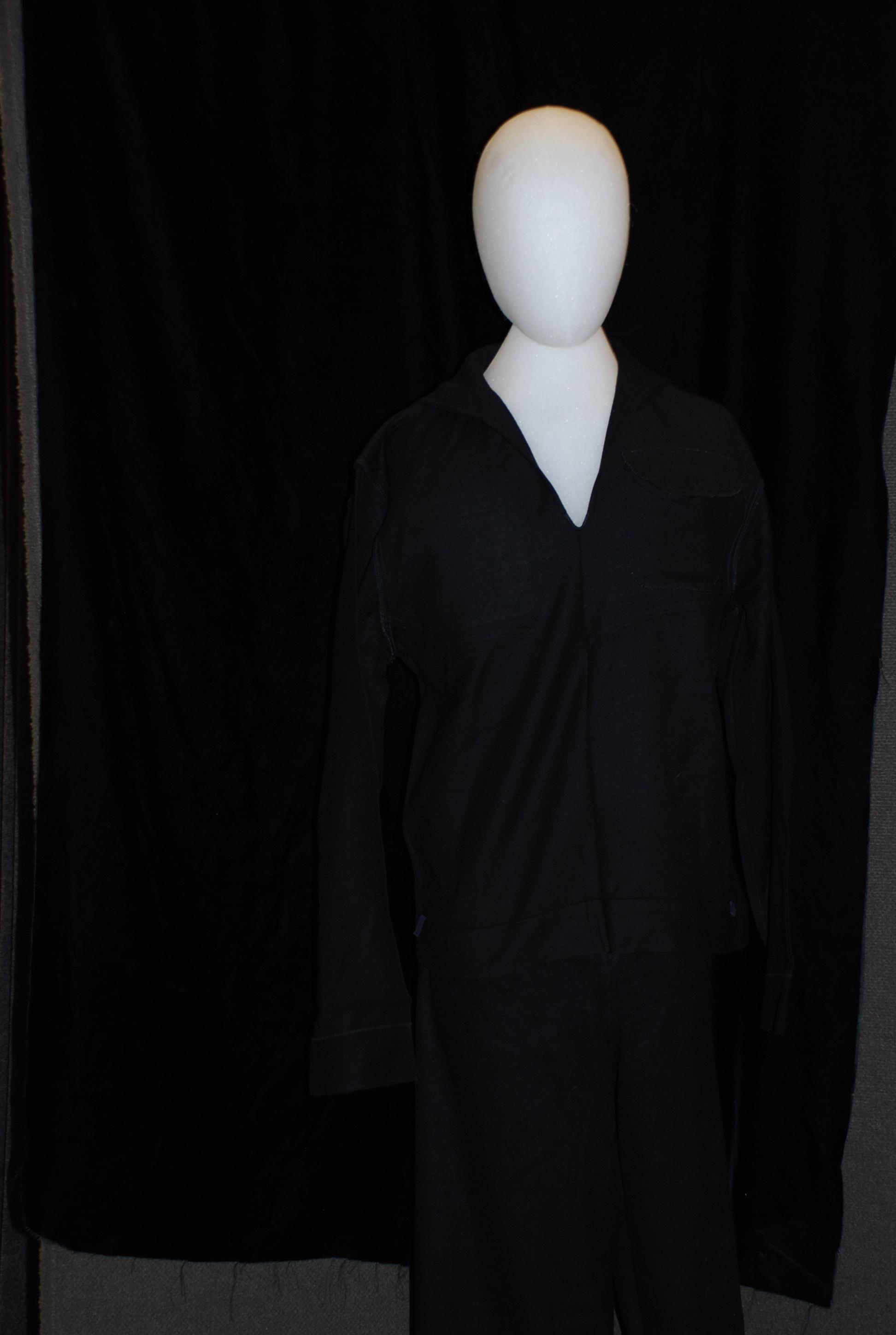Felt United States Navy shore patrol arm band. Black with yellow 'SP'