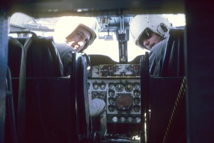 Pilot Richard D. Besley in the pilot's seat with his copilot.