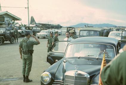 This picture shows me as a skinny major with a painted Bou ready to deliver eggnog, cookies, candy, ice cream, and much more during the days leading up to Christmas 1968. The Army troops in the field were astonished to say the least to see this airplane taxi into their forward base with the loadmaster standing atop the Bou's top hatch with a Santa suit on.