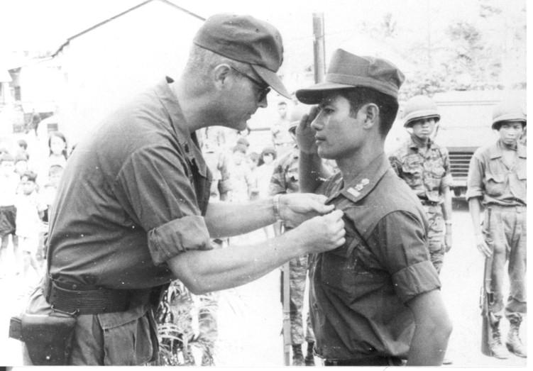 5 June 1969 1Lt Tran Van An Receiving Impact Award from JG Richardson, CG 25th Division Ron Osimo Collection