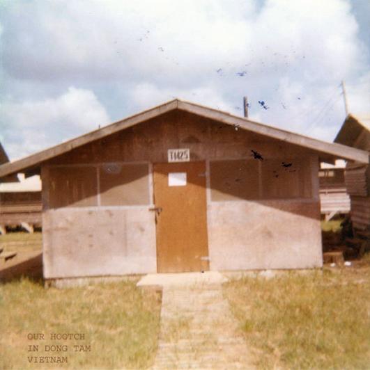 Caption on photograph reads 'Our hootch in Dong Tam Vietnam.'