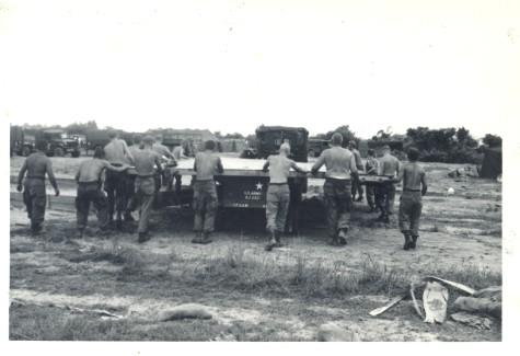 Trudas (APC's) with machine guns in the jungle neat Ben Cat Oct 1965--they were protecting us.