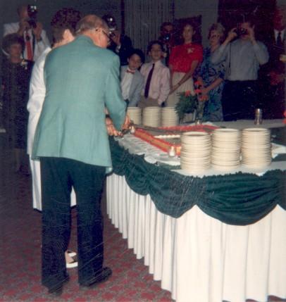 General Harry W.O. Kinnard and Libby Kinnard cut the cake.