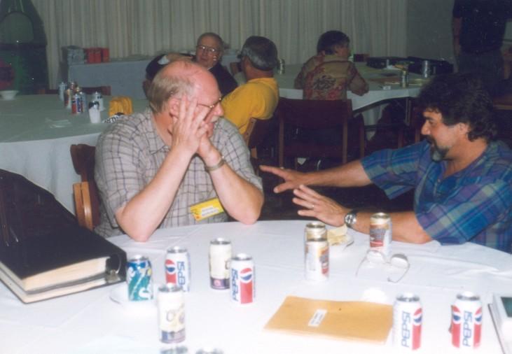 John Loughran got one up on George Goswick by tricking him into being a radio operator in the field. He can still get one up on George even if he has to stand on a chair to do it.