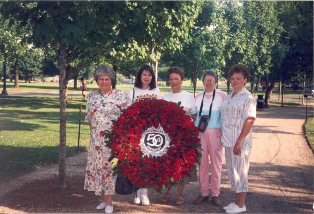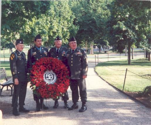 Arlington National Cemetery August 1990, 'Jumping Mustang Memorial Tree' Roy Martin and Gerry Plummer. (The ribbons from the Dedicationare on the tree, they were removed and are used for chapter postings)