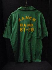 Green polo shirt with the name 'John' over the breast pocket and 'Ranch Hand 67-68' on the reverse.