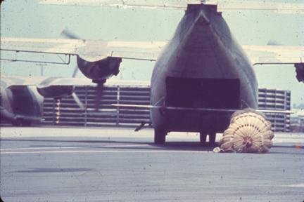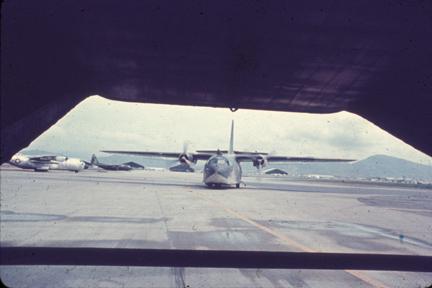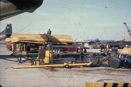 On herbicide pit at Danang note tail boom and Flt.Mech.box; 1967