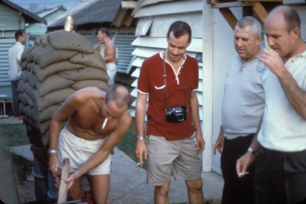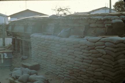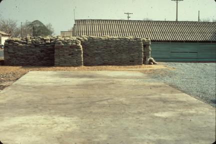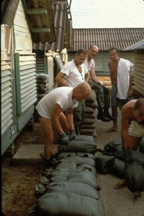 Building sand bag protect for qrts Bien Hoa; May 1968
