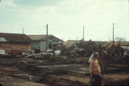 Damage to qrts at Bien Hoa Tet 1968; March 1968