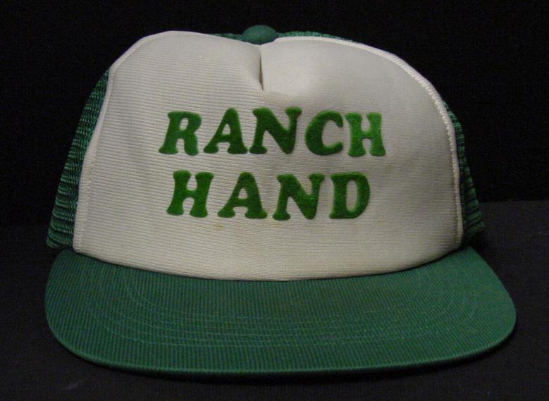 Green baseball style cap with 'Ranch Hand' on front.