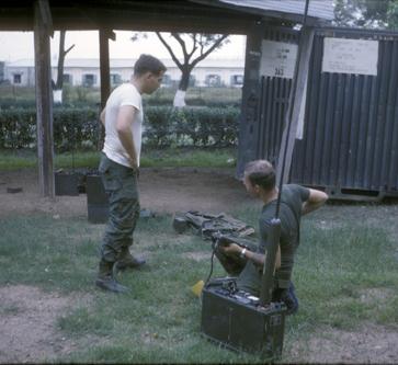 A1C Karnes and A1C Smith checking out radio gear prior to deployment from TSN.
