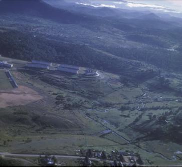 The Air Force Academy at Dalat from over a Drop Zone. This and several following slides were taken in conjunction with a training drop on a DZ at the Academy. It was made to simulate a combat assault, with a FAC controlling Vietnamese fighters preparing the DZ with practice (smoke) munitions and marking the DZ with a White Phosphorous rocket, and ABNDIV troopers