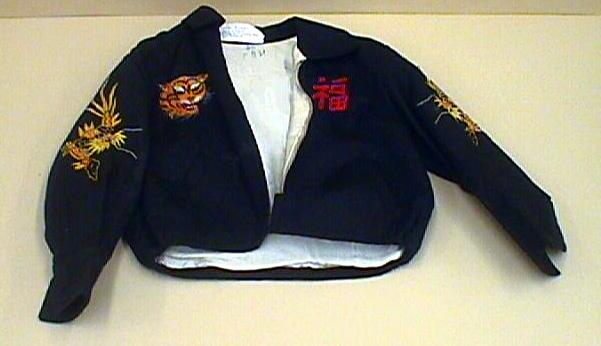 Small jacket purchased in May 1969 at Camp Eagle for my son Shane that had been born in Lubbock, Texas on April 30, 1969. Jacket has the Vietnamese inscription for Happiness on it.