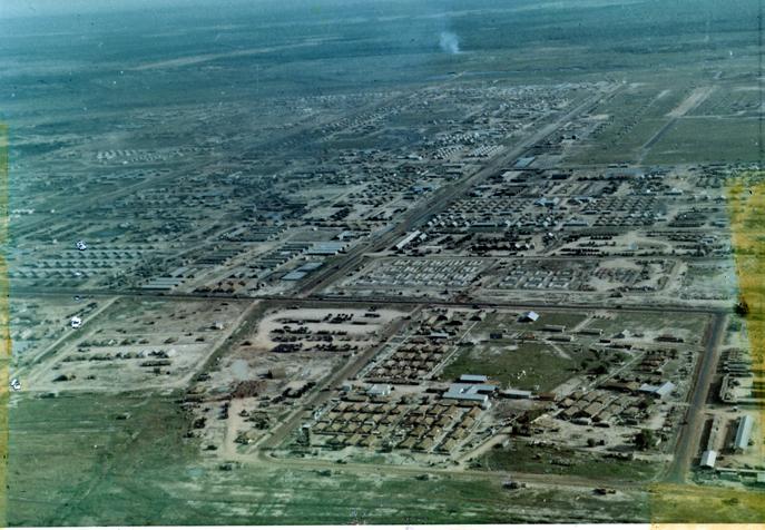 Operation Cedar Falls mission was to clear Viet Cong from the Iron Triangle near Saigon, RVN. The mission of C Company, 1st Battalion, 5th Mechanized Infantry, 2nd Brigade, 25th Infantry Division was to sweep through the Filhol Plantation in search of fleeing Viet Cong units. This is a aerial view of Cu Chi, RVN, home of the 25th Infantry Division. Photo by Robert C. Lafoon US Army Sp Photo Det, Pacific