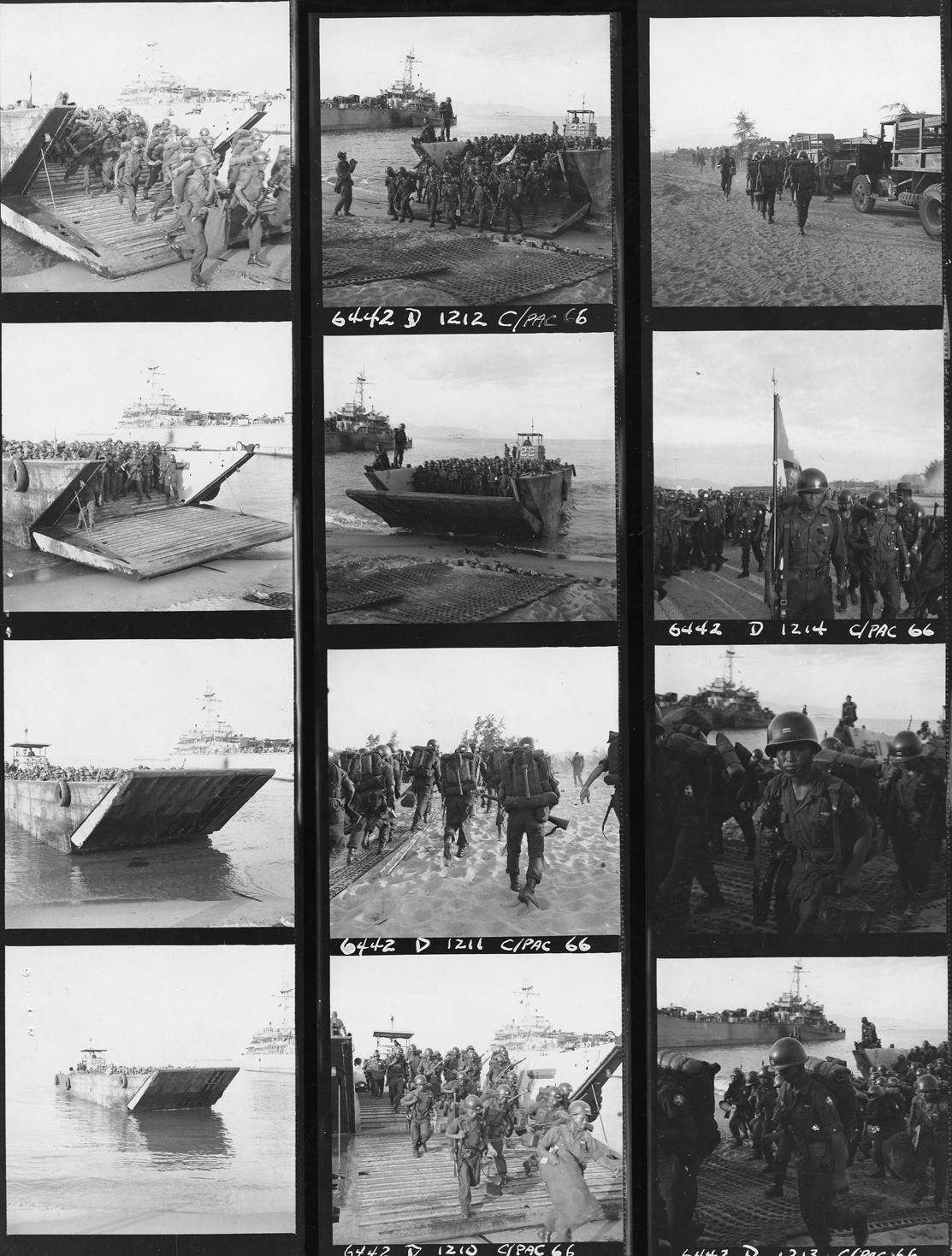 In September 1966, elements of the Korean 9th Division known as the White Horse Division arrived via boat coming ashore on a beach in Nha Trang, RVN. This sequence of photos depicts the arrival and onward movement of the division elements. After their arrival, the soldiers were positioned in the Ninh Hoa, RVN area. Photo by Robert C. Lafoon US Army Sp Photo Det, Pacific