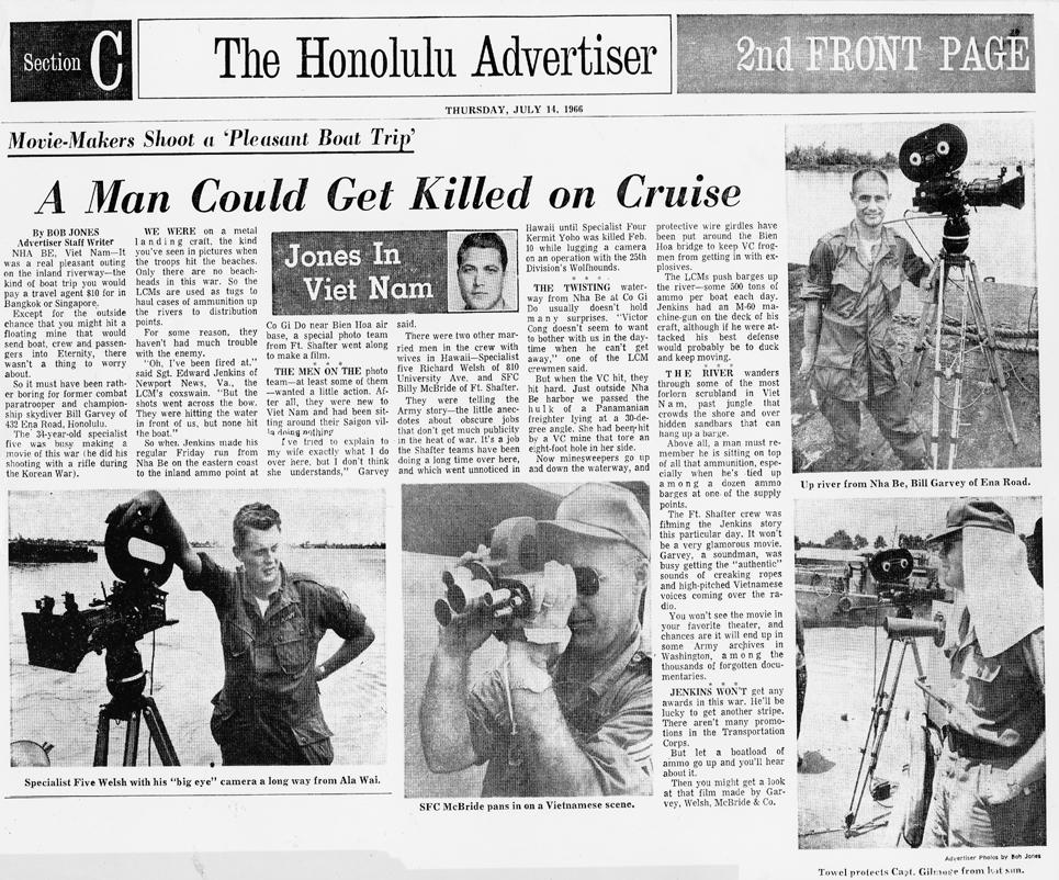 This article discusses some history and current events of the Department of the Army Special Photography Office's (DASPO). Although the detachment headquarters was at Fort Shafter, Hawaii, the unit constantly rotated teams in and out of Vietnam. The unit had two photographers KIA and several wounded during its coverage of the Vietnam War. Article written by: Bob Jones, Honolulu Advertiser
