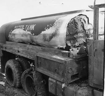The 1st Logistical Command's motor pool located by Tan San Nhut was attacked by Viet Cong using heavy weapons. The Military Assistance Command later reported the following casualties: 3 US and friendly wounded, 3 Army of Vietnam killed and 9 wounded. Destroyed tanker truck Photo by Robert C. Lafoon US Army Sp Photo Det, Pacific