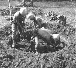 During Operation Van Buren The Republic of Korea's Marines of the 6th Company, 2nd Battalion, 3rd Brigade, working with the 101st Airborne, were charged with protecting the rice harvests in and around Tuy Hoa, RVN. The unit was a part of the Blue Dragoon Brigade. Soldiers prepare defensive position overlooking rice fields.. Photo by Robert C. Lafoon US Army Sp Photo Det, Pacific
