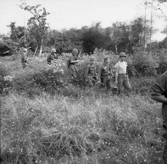 Operation Cedar Falls mission was to clear Viet Cong from the Iron Triangle near Saigon, RVN. The mission of C Company, 1st Battalion, 5th Mechanized Infantry, 2nd Brigade, 25th Infantry Division was to sweep through the Filhol Plantation in search of fleeing Viet Cong units.Members of a squad prepare to move into a brushy area in search of fleeing Viet Cong. Photo by Robert C. Lafoon , US Army Sp Photo Det, Pacific