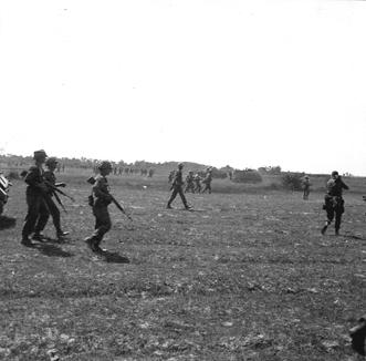 Operation Cedar Falls mission was to clear Viet Cong from the Iron Triangle near Saigon, RVN. The mission of C Company, 1st Battalion, 5th Mechanized Infantry, 2nd Brigade, 25th Infantry Division was to sweep through the Filhol Plantation in search of fleeing Viet Cong units. Members of a squad move across an opening in a line formation. Photo by Robert C. Lafoon US Army Sp Photo Det, Pacific.