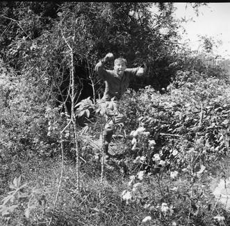 Operation Cedar Falls mission was to clear Viet Cong from the Iron Triangle near Saigon, RVN. The mission of C Company, 1st Battalion, 5th Mechanized Infantry, 2nd Brigade, 25th Infantry Division was to sweep through the Filhol Plantation in search of fleeing Viet Cong units. During the sweep an anti-tank mine was found and destroyed. After lighting the fuse to attached to TNT, SP4 William C. Frank runs from the detonation area to safety. Photo by Robert C. Lafoon US Army Sp Photo Det, Pacific