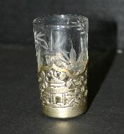 set are 4 silver shot glasses also included in set is decanter (1040museum1571) and 3 rocks glasses (1040museum1573)