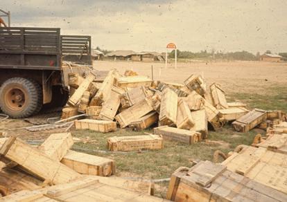 War zone C - 150 Artillery shell boxes and Huey helicopter