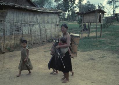 Lac Ninh - Montagnards - looking in rice paddies for snails