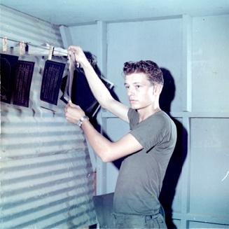 CC 66943 Nha Trang, Vietnam CIVIL OPERATIONS AND RURAL DEVELOPMENT SUPPORT SP4 John Leach (Hanson City, Mo), Co 'A', 8th Psyops Det, develops the photo offset plate in the printing shop. 29 April-1 May 1970 Photo by SP4 Joel M. Shanus USA Sp Photo Det, Pac Unclassified by USAPA, 26 June 70