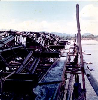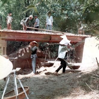 CC 67945 DIEN PHU, VIETNAM CORDS ACTIVITIES Vietnamese woman fills baskets with dirt to be used in the construction of this bridge, by a US Civic Action Team and the CORDS Dien Nhanh Advisory Elements, along with the villagers. 26-29 May 1970 Photo by SP4 Joel M. Shanus USA Sp Photo Det, Pac UNCLASSIFIED by USAPA, 16 July 70