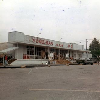 CC 69515 KOREA FIRE AT THE YONGSAN MAIN PX An Inquiry Board made up of Engineer officers insepct the remains of the Main Post Exchange to discover the cause of a fire on 9 July 1970. Front of the Main PX. 10 July 1970 Photo by SP4 Joel M. Shanus USA Sp Photo Det, Pac UNCLASSIFIED by USAPA, 26 Aug 70