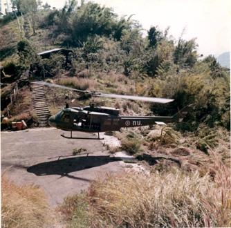CC 73335 KOKE THIEM THAILAND ROYAL THAI ARMY AVIATION SCHOOL A UH-1D helicopter from the 1st Airmobile CO, makes a 'pinnacle' landing on a mountain top during proficiency training excercises. 20-27 Nov 1970 Photo by SP5 Joel M. Shanus USA Sp Photo Det, Pac UNCLASSIFIED by USAPA, 28 Jan 71