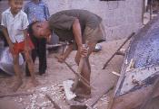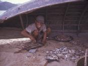 This tape of a Vietnamese girl singing was taped by Stewart Barbee in October 1969 in Saigon, Vietnam. The girl was in her early teens and always wore her traditional Vietnamese clothes. When she would sing, another Vietnamese girl would loosely translate the songs. The tape was recorded with a Nagra III.