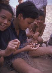 This tape of a Vietnamese girl singing was taped by Stewart Barbee in October 1969 in Saigon, Vietnam. The girl was in her early teens and always wore her traditional Vietnamese clothes. When she would sing, another Vietnamese girl would loosely translate the songs. The tape was recorded with a Nagra III. These two audio-cassette tapes were created from the original by Barbee in 1998, which was the first time that he had listened to the tape since its original recording.