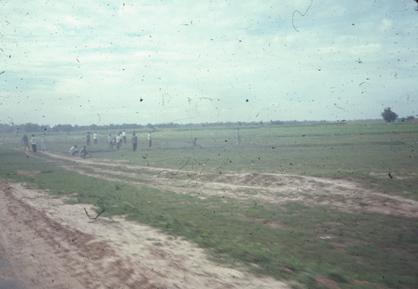 People in a field with dust
