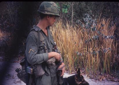 A soldier with a dog