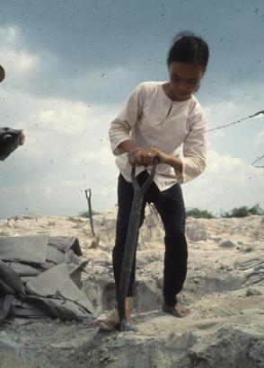 Sand bag filler Long Binh Post Paid 2 piaster per sandbag (118p to the dollar)