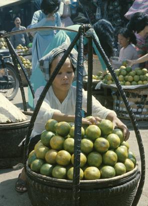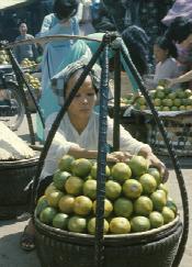 Vietnam Markets - Woman vendor with tub of fish to sell