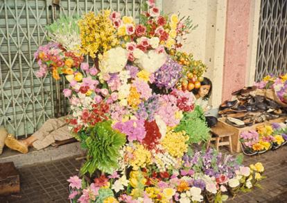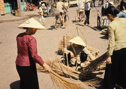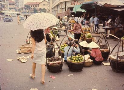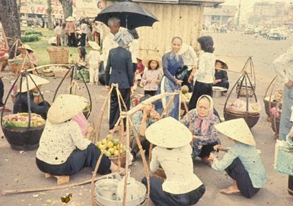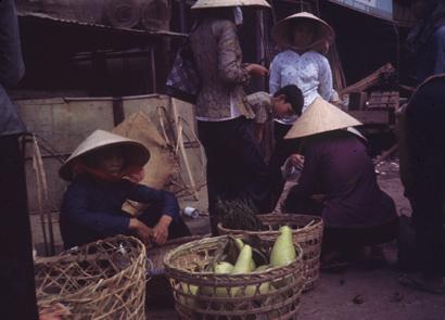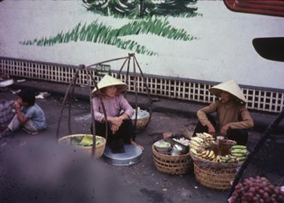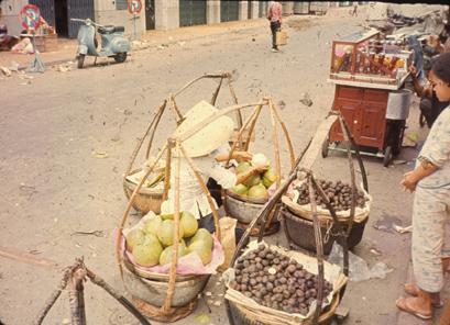 Vietnam Markets - Push cart vendor next to permanent vendor
