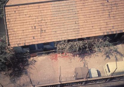 Rocket marks on building