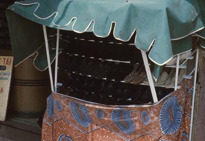 Vietnam Markets - Rack of shoes for sale