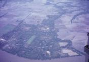 Aerial view of the edge of a town
